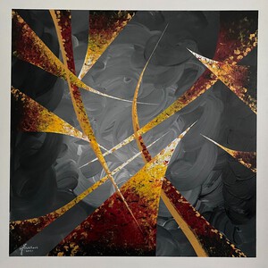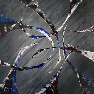 2021Seasonal change is het achtste schilderij uit de serie Autumn Equinox & Mabon. Graag maak ik lange wandelingen in de natuur. Kijkend naar een strakblauwe lucht afgewisseld met donkergrijze luchten, gedroogde planten en bladeren in alle kleuren op je pad. Ik geniet ervan, observeerde het en abstraheerde het op dit doek. Dit schilderij wordt geleverd inclusief luxe houten frame (niet afgebeeld).