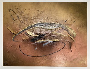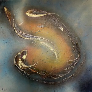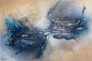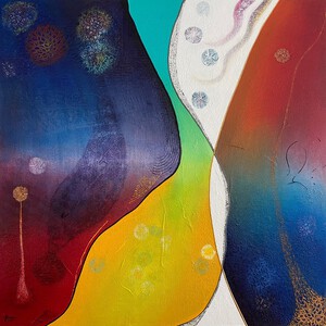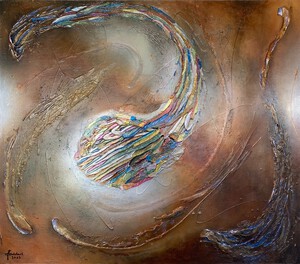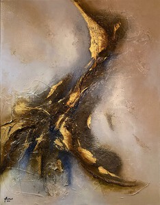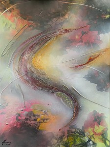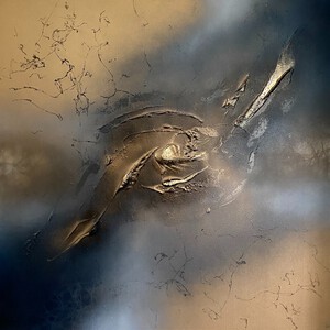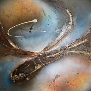 2022Het mooie van abstracte kunst is dat jouw verbeelding, jouw creativiteit, bepaald wat je ziet. Waar ik vaak primair met schildertechnieken en uitgebalanceerde kleuren en vormen bezig ben, ziet de kunstverzamelaar landschappen, de kosmos, dieren en soms zelfs geesten in mijn abstracte schilderijen. Prachtig vind ik dat. De vormen in dit schilderij vloeien voort uit mijn stemming op de dag dat ik aan het schilderij begon; senang, in evenwicht en energiek. De kleuren geïnspireerd door de mooie pastelachtige, aardse kleuren van een bos droogbloemen die we op tafel hadden staan, aangevuld met accenten van onaardse parelmoer kleuren. De toegepaste mixed media technieken hebben een 3D-structuur als ondergrond neergezet die ik nooit nogmaals precies zo zou kunnen creëren, al zou ik het willen. Nu ben ik natuurlijk benieuwd wat voor objecten, vormen of figuren jij in mijn abstracte kunst ziet? Mixed media op houtpaneel, 80cm x 70cm x 3.6cm
